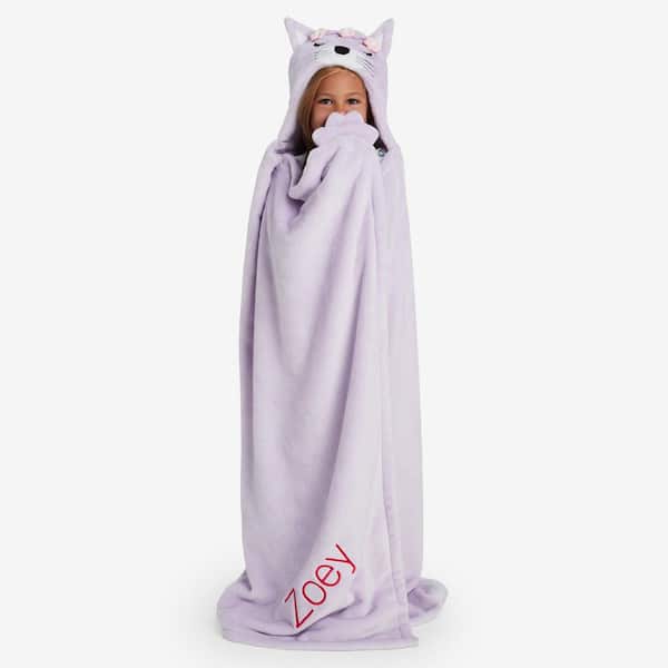 Plush Lavender Cat Character Throw Blanket