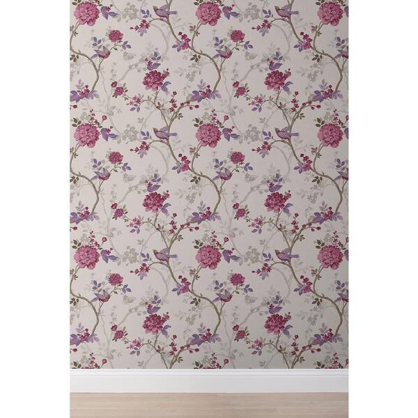 Traditional Bird Purple Non-Pasted Wallpaper Roll (covers approx. 52 sq. ft.)
