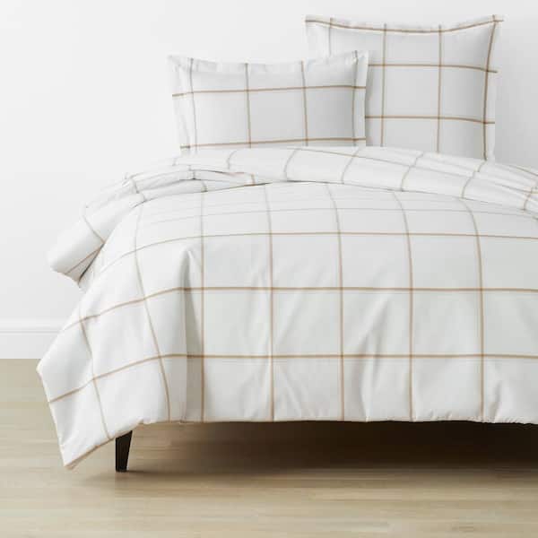 Window Pane Plaid T200 Yarn Dyed Wheat King Cotton Percale Duvet Cover