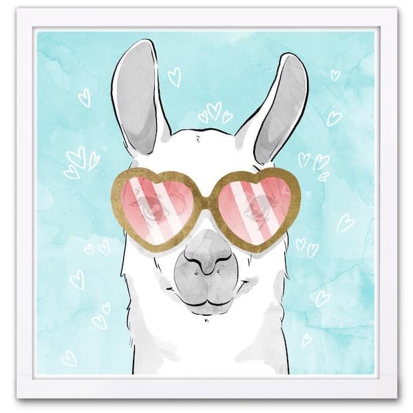 Animals "Lovely Hearts Llama" Framed Art Print 13 in. x 13 in.