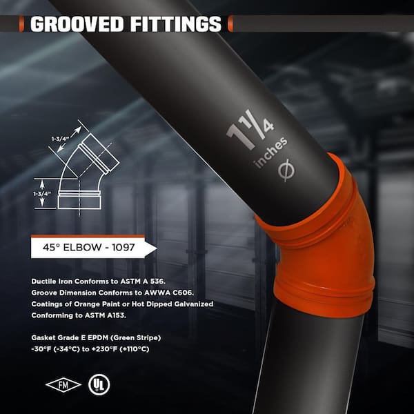 1-1/4 in. Ductile Iron 45-Degree Grooved Elbow Fitting, Joins Pipes in Wet and Dry Systems, Full Flow, Orange