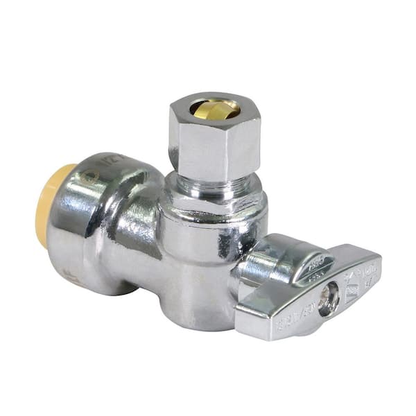 1/2 in. Push x 1/4 in. Comp Push-Fit Water Supply Stop Angle Valve Quarter Turn, Lead Free Chrome Plated Brass 2 Pack