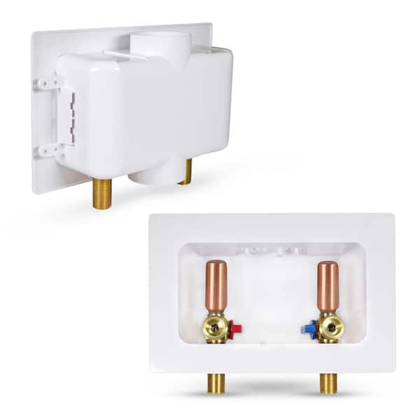 1/2 in. Sweat/MIP Brass Valve Fittings in White ABS Washing Machine Center Outlet Box with Hammer Arrester 2-Pack