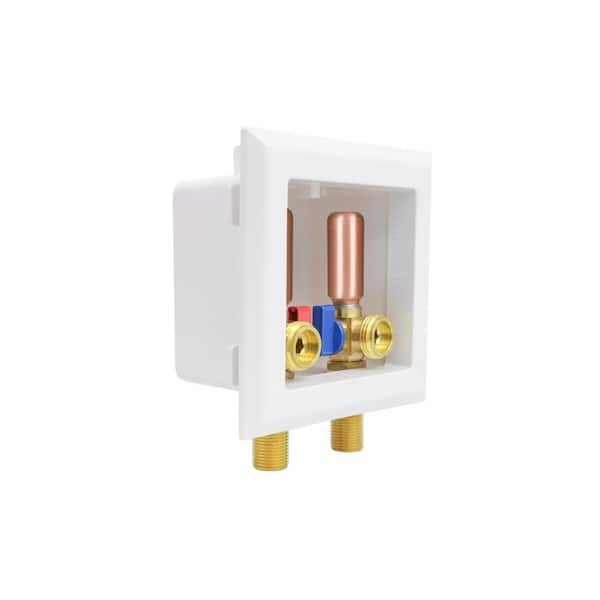 1/2 in. Sweat/MIP Brass Valve Fittings in White ABS Washing Machine Compact Outlet Box with Hammer Arrester 2-Pack