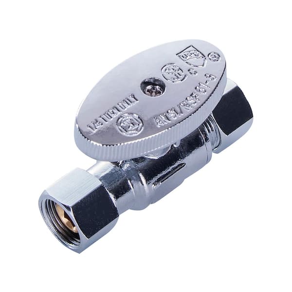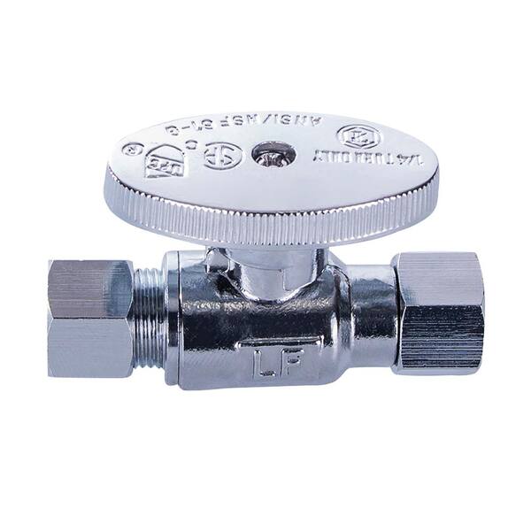 3/8 in. COMP F x 3/8 in. Comp M Add on Valve Quarter Turn Wheel; Lead Free Chrome Plated Brass 2 Pack
