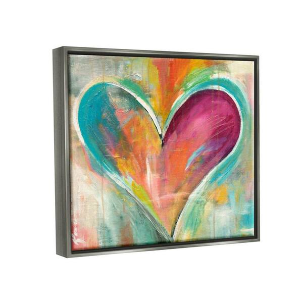 Abstract Colorful Textural Heart Painting by Kami Lerner Floater Frame Abstract Wall Art Print 21 in. x 17 in.