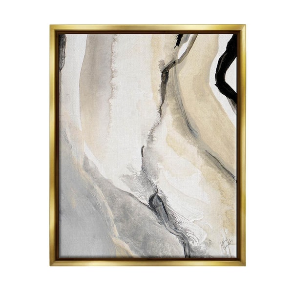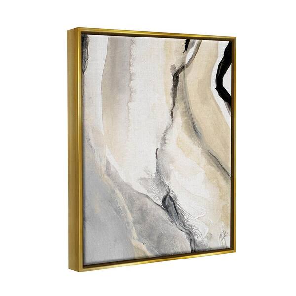 Abstract Paint Strokes Fluid Beige Movement by Lanie Loreth Floater Frame Abstract Wall Art Print 25 in. x 31 in.