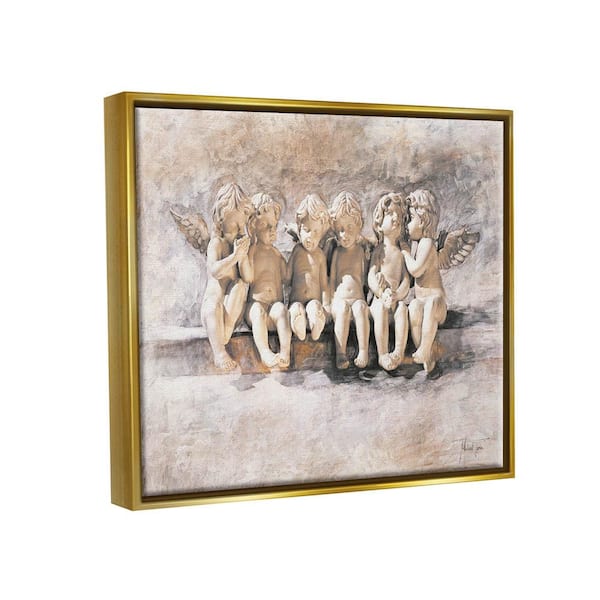 Angels Chatting Religious Neutral Painting by Young and Proven Floater Frame Religious Wall Art Print 21 in. x 17 in.
