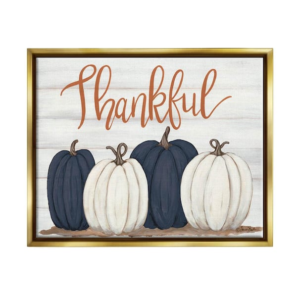 Autumn Farm Pumpkin Harvest with Thankful Phrase by Sarah Baker Floater Frame Country Wall Art Print 21 in. x 17 in.
