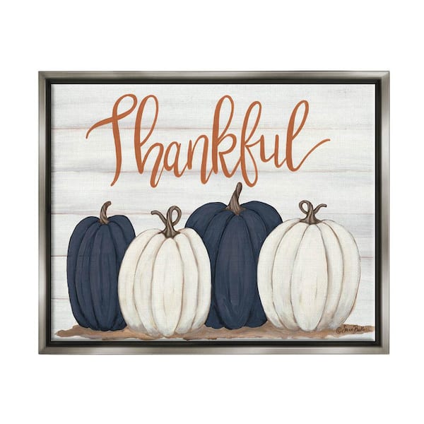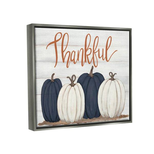 Autumn Farm Pumpkin Harvest with Thankful Phrase by Sarah Baker Floater Frame Country Wall Art Print 21 in. x 17 in.