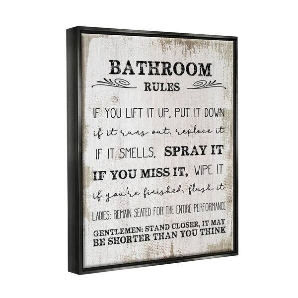 Bathroom Rules Funny Word Wood Textured by Daphne Polselli Floater Frame Typography Wall Art Print 31 in. x 25 in.