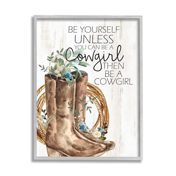 Be Yourself Or A Cowgirl Floral Boots Design By Kim Allen Framed Nature Art Print 20 in. x 16 in.