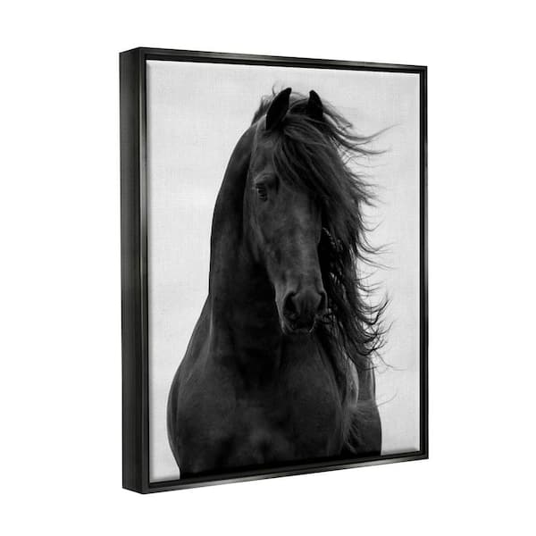 Black Stallion Horse Portrait Soft Sky Photography by Carol Walker Floater Frame Animal Wall Art Print 17 in. x 21 in.