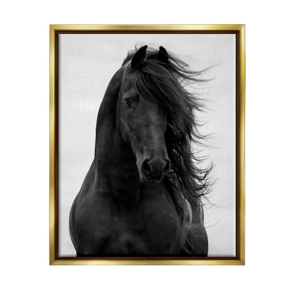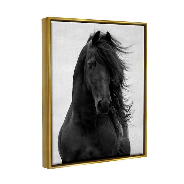 Black Stallion Horse Portrait Soft Sky Photography by Carol Walker Floater Frame Animal Wall Art Print 25 in. x 31 in.