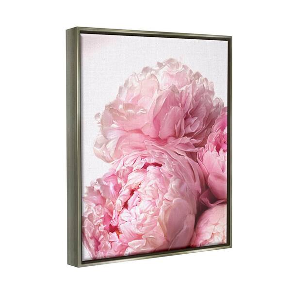 Blush Pink Peonies Florals Blooming over White by Ziwei Li Floater Frame Nature Wall Art Print 17 in. x 21 in.