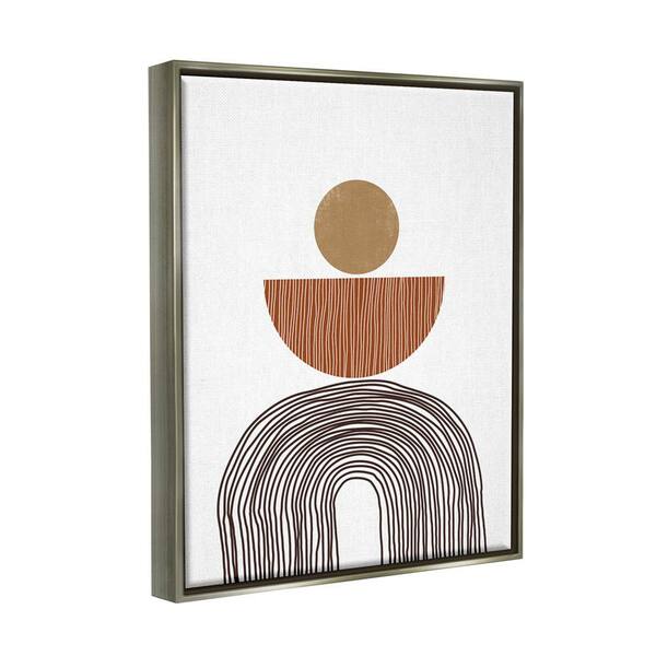 Boho Shapes Stacked Round Curve Brown White by JJ Design House LLC Floater Frame Abstract Wall Art Print 17 in. x 21 in.