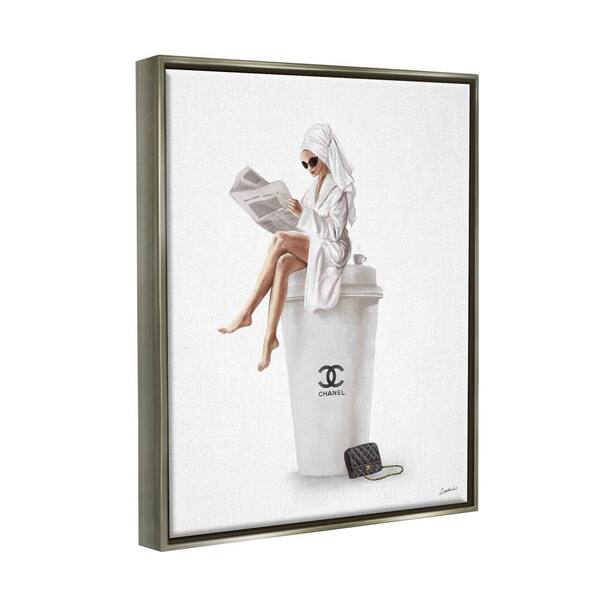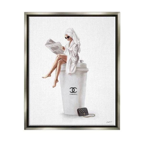 Chic Fashion Coffee and Purse Female Robe Pose by Ziwei Li Floater Frame Food Wall Art Print 25 in. x 31 in. .