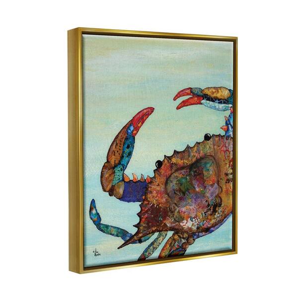 Colorful Crab on Sand Aquatic Animal Painting by Lisa Morales Floater Frame Animal Wall Art Print 21 in. x 17 in.