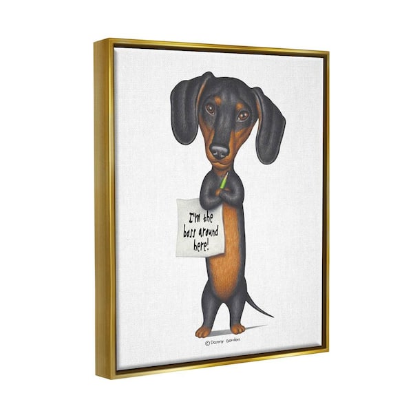 Dachshund 'I'm The Boss' Fun Family Pet Phrase by Danny Gordan Floater Frame Animal Wall Art Print 31 in. x 25 in.