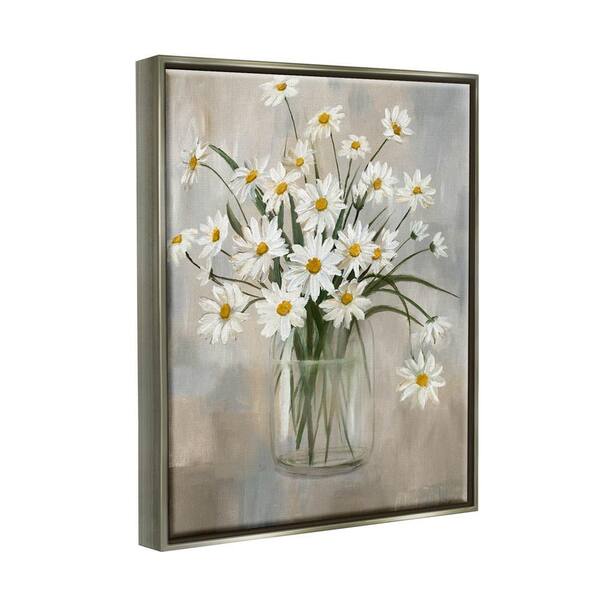 Daisy Bloom Bouquet Potted Flowers Abstract Pattern by Nan Floater Frame Nature Wall Art Print 21 in. x 17 in.