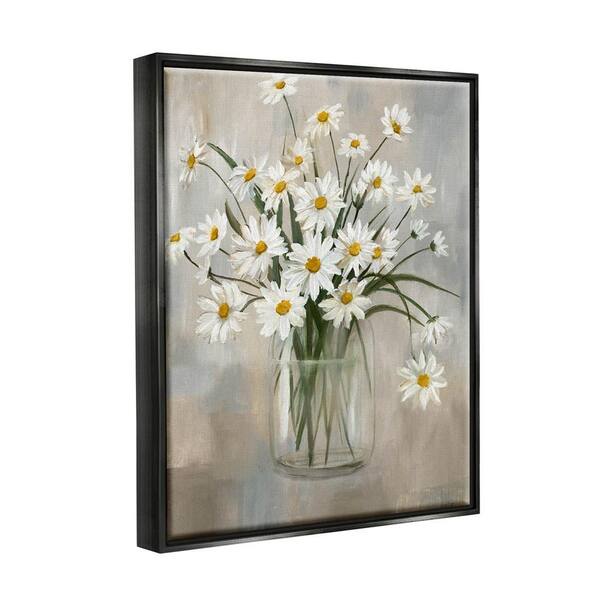Daisy Bloom Bouquet Potted Flowers Abstract Pattern by Nan Floater Frame Nature Wall Art Print 31 in. x 25 in.