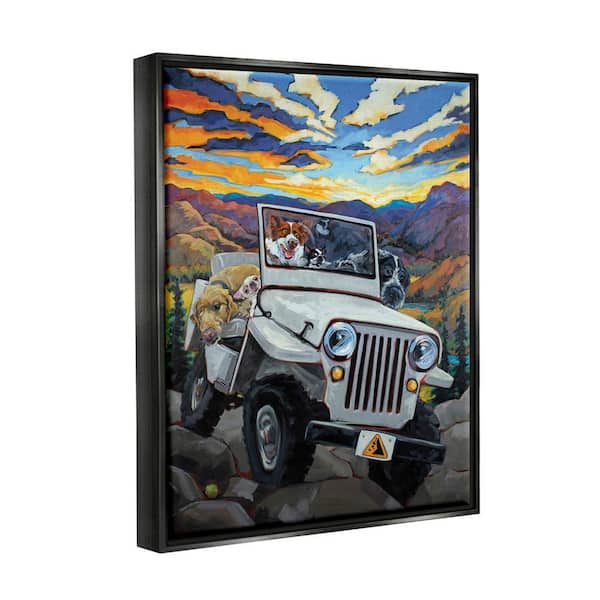 Dogs Off-Roading Desert Drive Mountain Sunset by CR Townsend Floater Frame Animal Wall Art Print 17 in. x 21 in.