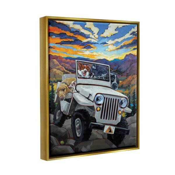Dogs Off-Roading Desert Drive Mountain Sunset by CR Townsend Floater Frame Animal Wall Art Print 31 in. x 25 in.