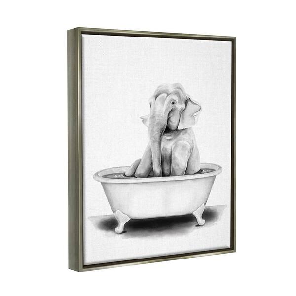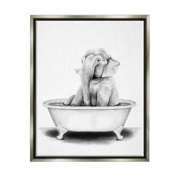 Elephant In A Tub Funny Animal Bathroom Drawing by Rachel Neiman Floater Frame Animal Wall Art Print 17 in. x 21 in.