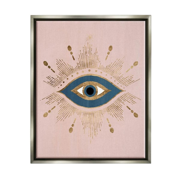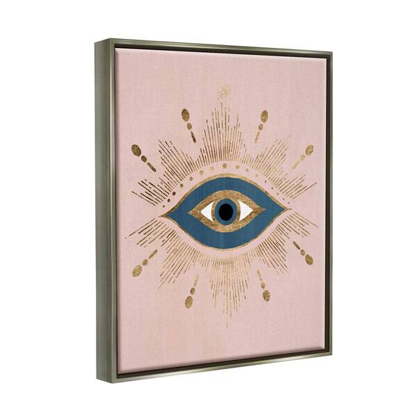 Evil Eye Glam Boho Pattern Bold Blue Pink by Grace Popp Floater Frame Religious Wall Art Print 21 in. x 17 in.