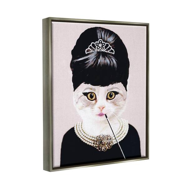 Fashion Feline Jewelry And Makeup Cat by Coco de Paris Floater Frame Animal Wall Art Print 31 in. x 25 in.
