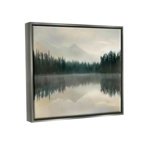 Foggy Lake Forest Landscape Soft Water Reflection by Danita Delimont Floater Frame Nature Wall Art Print 25 in. x 31 in.