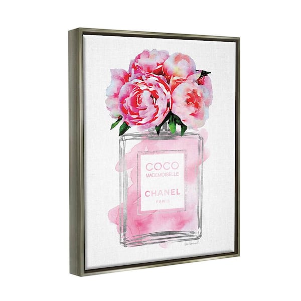 Glam Perfume Bottle V2 Flower Silver Pink Peony by Amanda Greenwood Floater Frame Nature Wall Art Print 17 in. x 21 in.