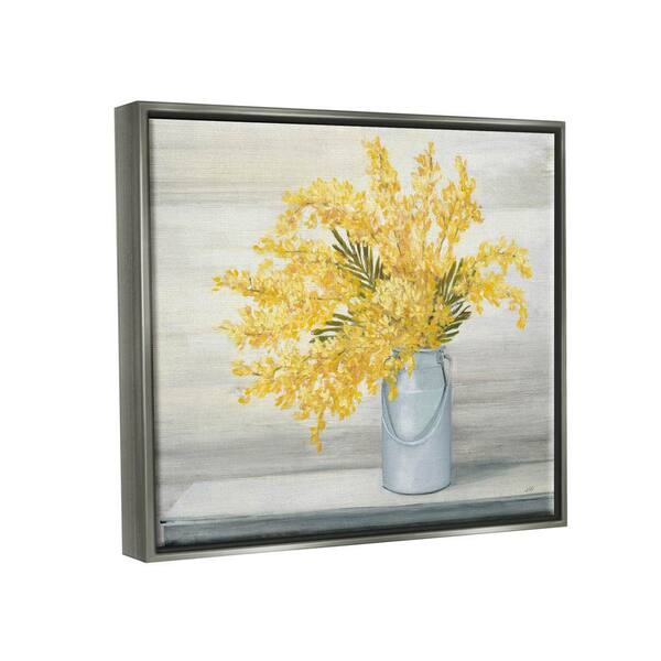 Golden Fall Floral Bouquet in Country Milk Tin by Julia Purinton Floater Frame Nature Wall Art Print 25 in. x 31 in.