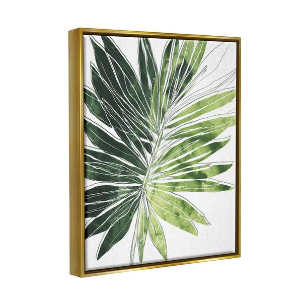 Green Pop Palm Leaves Expressive Linework by June Erica Vess Floater Frame Nature Wall Art Print 25 in. x 31 in.