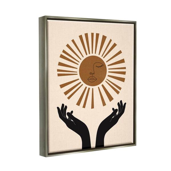 Hands Holding Desert Sun with Face Linework by JJ Design House LLC Floater Frame Abstract Wall Art Print 31 in. x 25 in.