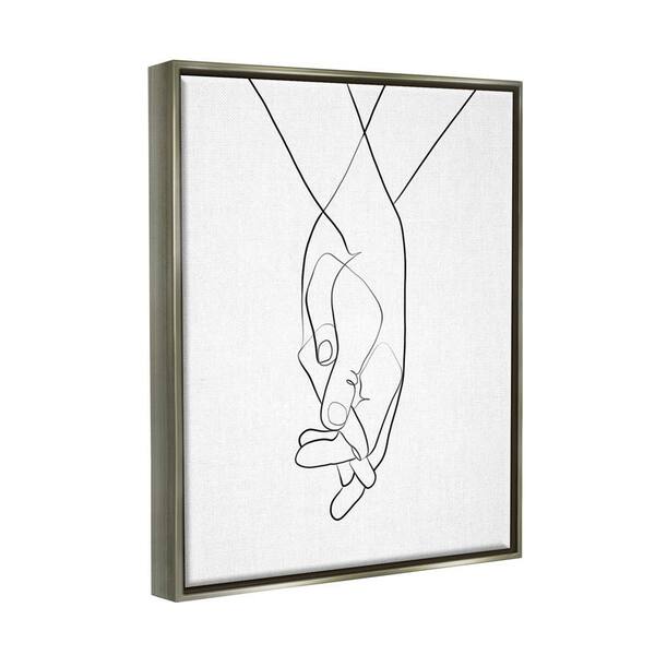 Hands Intertwined Romantic Gesture Minimal Linework" by Ros Ruseva Floater Frame People Wall Art Print 17 in. x 21 in.