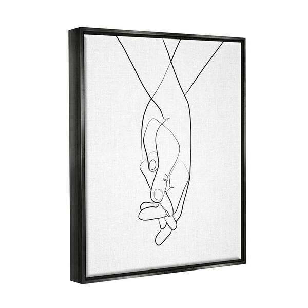 Hands Intertwined Romantic Gesture Minimal Linework" by Ros Ruseva Floater Frame People Wall Art Print 25 in. x 31 in.