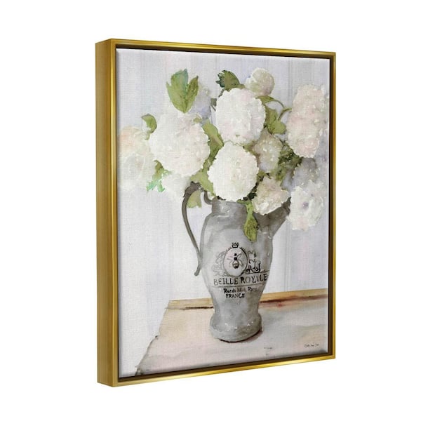 Hydrangea in French Country Pitcher Life by Stellar Design Studio Floater Frame Nature Wall Art Print 21 in. x 17 in.