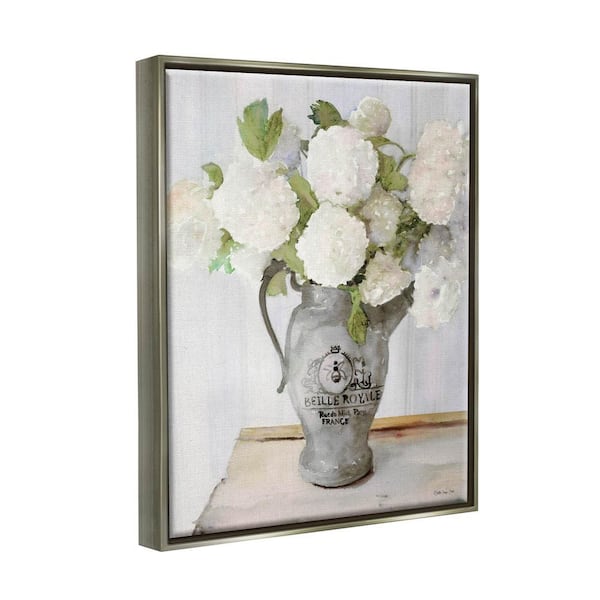 Hydrangea in French Country Pitcher Life by Stellar Design Studio Floater Frame Nature Wall Art Print 31 in. x 25 in.