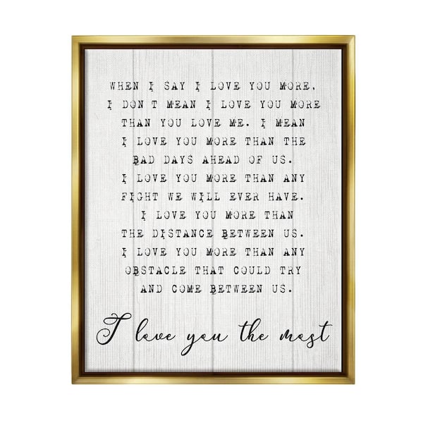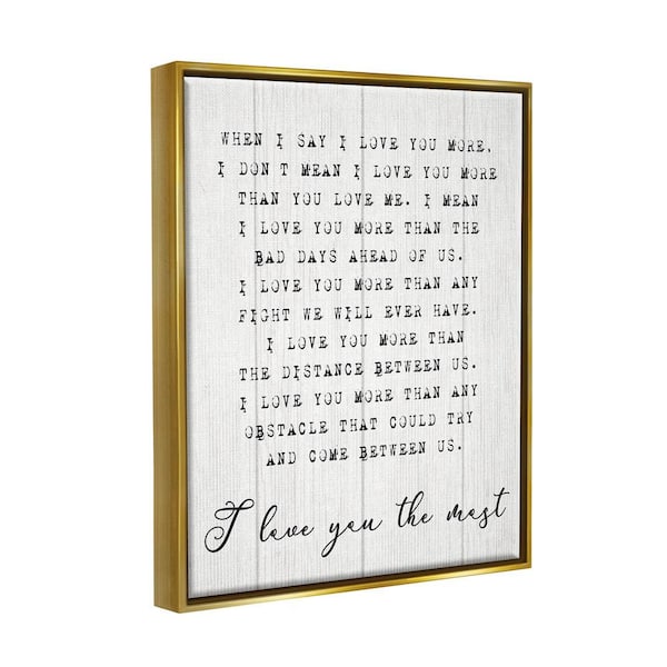 I love You the Most Phrase Relationship by Daphne Polselli Floater Frame Typography Wall Art Print 25 in. x 31 in. .