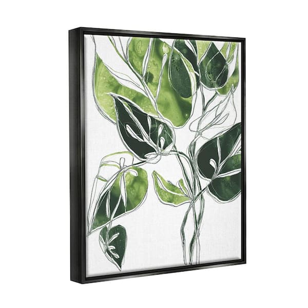 Intricate Palm Vines Unique Green Leaves by June Erica Vess Floater Frame Nature Wall Art Print 25 in. x 31 in.