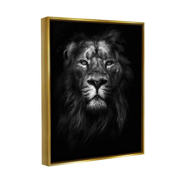 King of the Jungle Lion In Shadows Photography by Design Fabrikken Floater Frame Animal Wall Art Print 21 in. x 17 in.