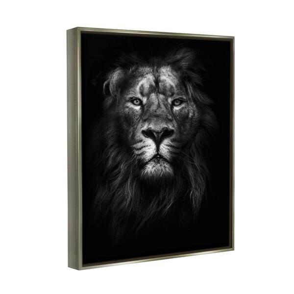King of the Jungle Lion In Shadows Photography by Design Fabrikken Floater Frame Animal Wall Art Print 31 in. x 25 in.