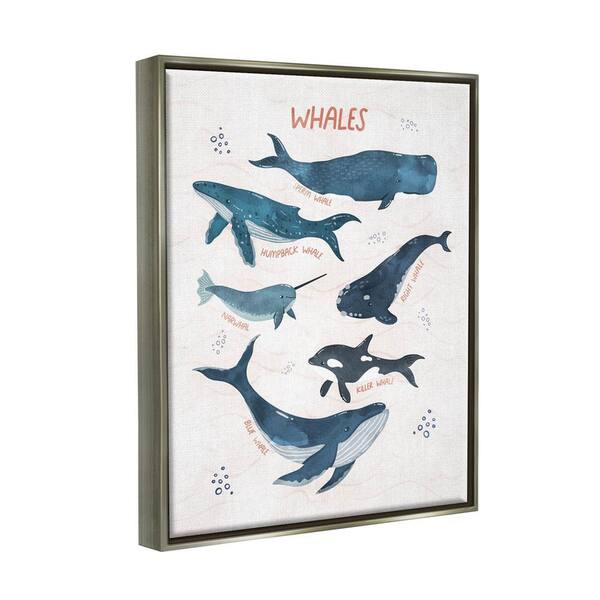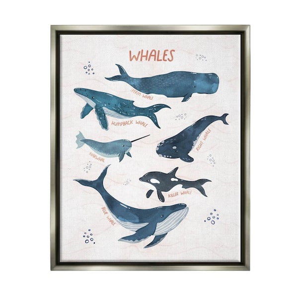 Nautical Diagram Whale Narwhal Bubbles Illustration by Nina Blue Floater Frame Animal Wall Art Print 31 in. x 25 in. .