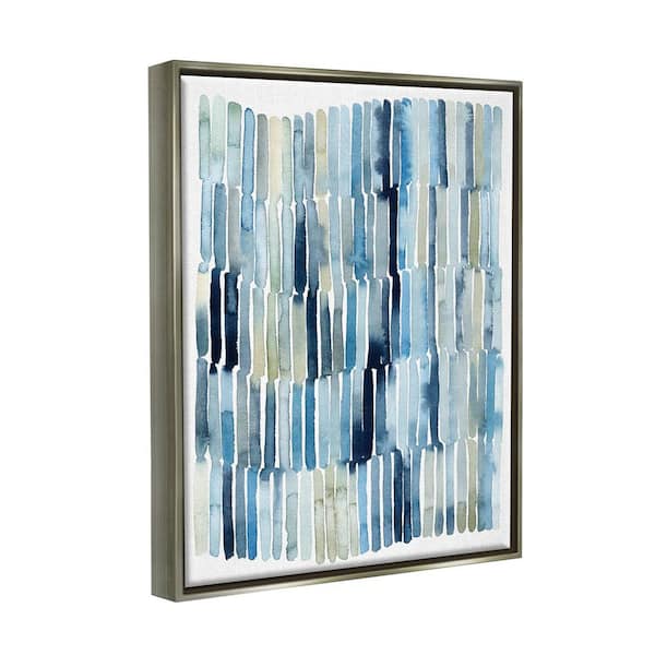 Nautical Inspired Blue Beige Blocked Lines by Grace Popp Floater Frame Abstract Wall Art Print 17 in. x 21 in.