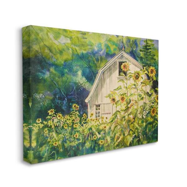 Peaceful Sunflower Countryside Woodlands Barn by MB Cunningham Unframed Architecture Art Print 20 in. x 16 in.