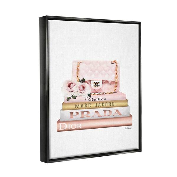 Pink Purse Gold Bookstack Glam Watercolor Design by Amanda Greenwood Floater Frame Nature Wall Art Print 17 in. x 21 in.