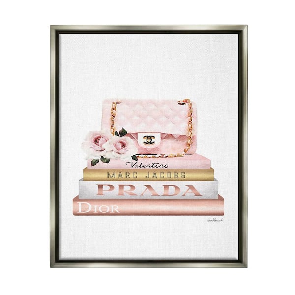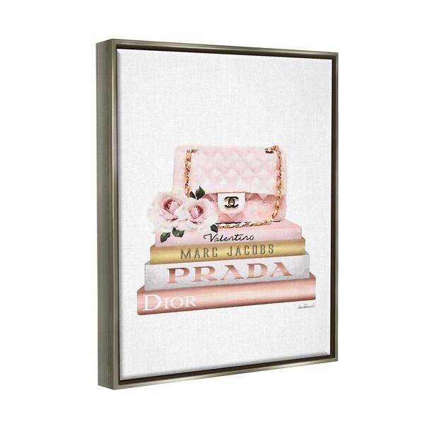 Pink Purse Gold Bookstack Glam Watercolor Design by Amanda Greenwood Floater Frame Nature Wall Art Print 31 in. x 25 in.