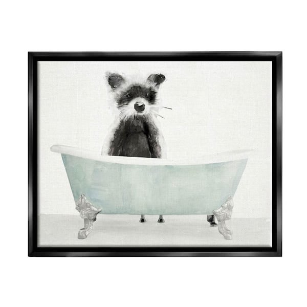 Raccoon Funny Animal Bathroom Drawing by Stellar Design Studio Floater Frame Animal Wall Art Print 31 in. x 25 in.