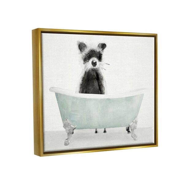 Raccoon Funny Animal Bathroom Drawing by Stellar Design Studio Floater Frame Animal Wall Art Print 31 in. x 25 in.